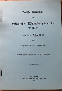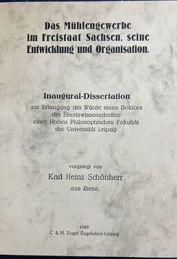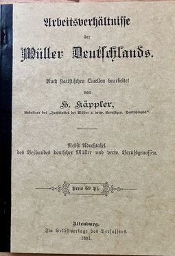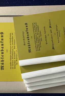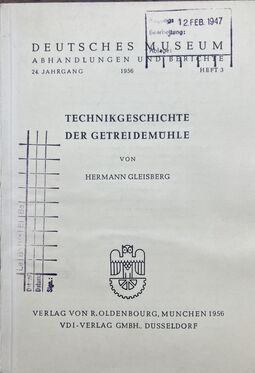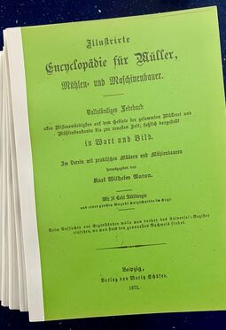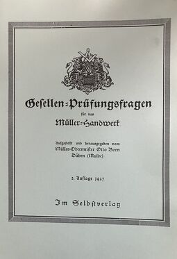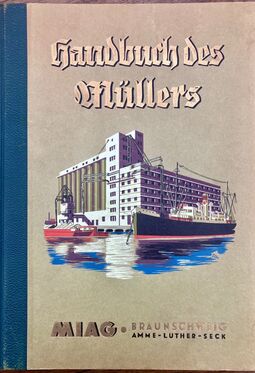 Reichsfachgruppe des Mühlenbauerhandwerks (Hrsg.): Verzeichnis der Betriebe und Leistungen des Mühlenbauerhandwerks, Leipzig 1938, 172 Seiten, gebunden, zahlr. Abbildungen und Werbeanzeigen (Alterspuren)