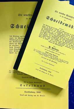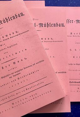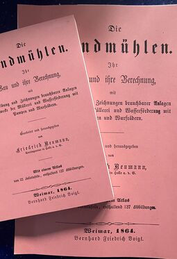 Carl Friedrich Schlegel: Vollständige Mühlenbaukunst - Praktisches Lehrbuch für Mühlenbauer und Müller, Leipzig 1846, , VIII, 502 Seiten, Thermobindung in 5 Bänden (DIN A 5), Mappe (DIN A 3) mit 36 Tafeln
