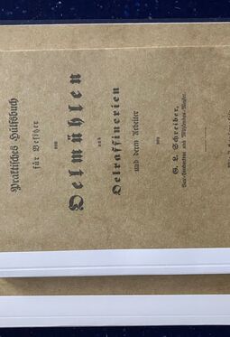 G.L. Schreiber: Praktisches Hülfsbuch für Besitzer von Oelmühlen und Oelraffinerien und deren Arbeiter, Königsberg 1837, VIII, 94 Seiten, Thermobindung (DIN A 5), 3 Tafeln, Thermobindung (DIN A 4)